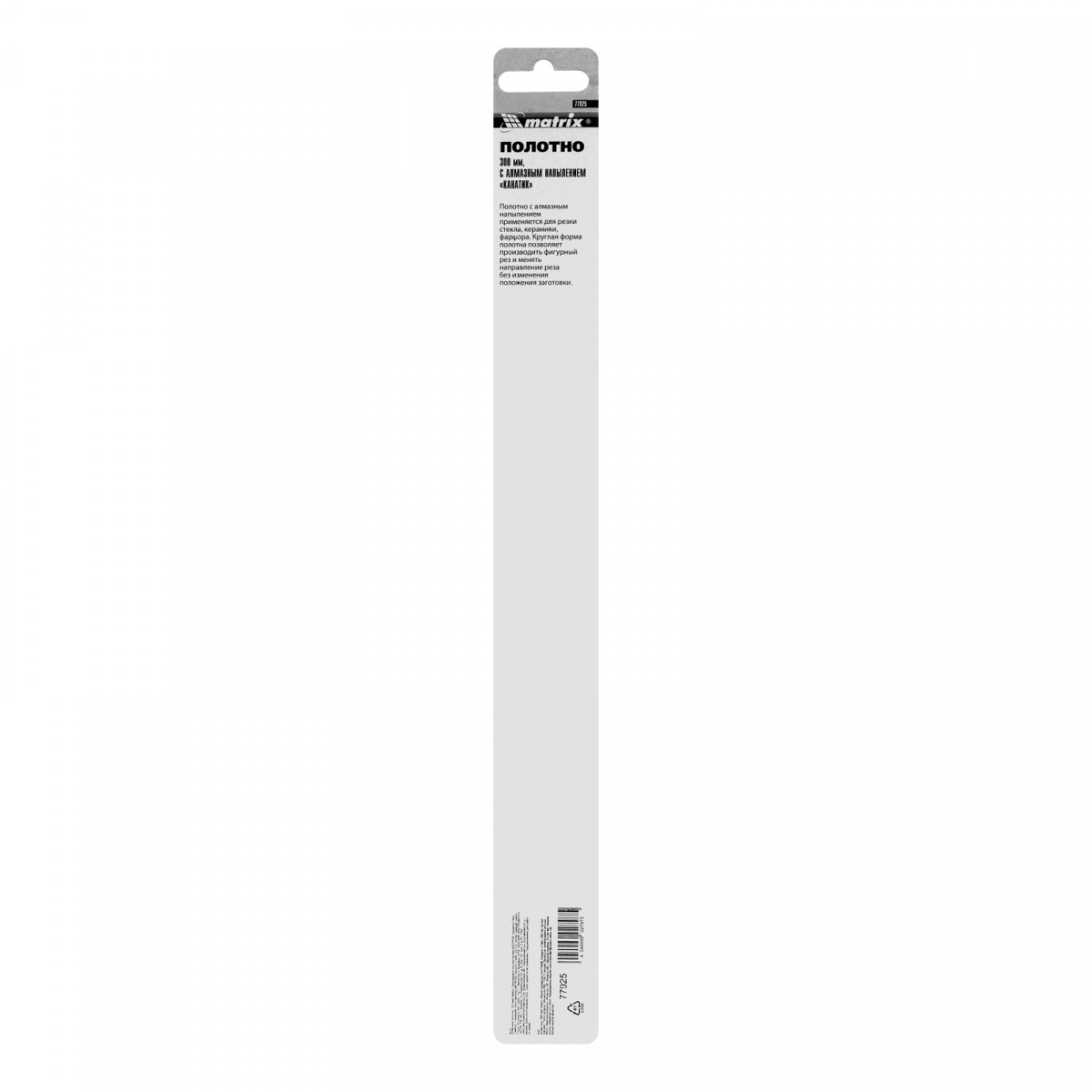Алмазное полотно Matrix 77925 длиной 300 мм позволяет резать различные твердые материалы: стекло, керамику, фарфор. Оно устанавливается на ручные ножовки в качестве сменного рабочего элемента. Полотно оптимально для бытового применения и пригодится при проведении ремонтных работ даже начинающим мастерам.
