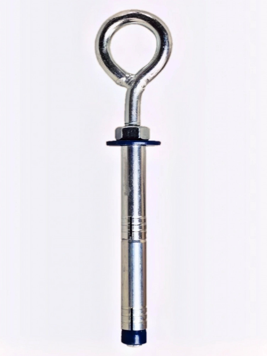 Анкер двухраспорный с кольцом предназначен для устойчивой фиксации тяжеловесных конструкций кабельных систим перильных ограждений полок несущих консолей. Благодаря двум распорным зонам крипеж обеспечивает повышенную прочность и надёжность креплления. Используется для установки в бетоннные кирпичные и каменные основаиия.