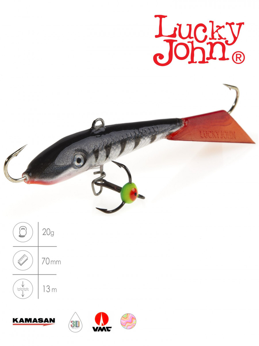 Бренд Lucky John, хорошо известный российским рыболовам благодаря своей широкой линейке зимних приманок. Специалисты компании накопили большой опыт в вопросах зимней рыбалки и реализовали его в своих балансирах. Бренд Lucky John представляет линейку балансиров FIN. Балансир имеет особый дизайн, который придает ему особую, очень реалистичную игру. Центр тяжести приманки смещен в головную часть приманки, что дает возможность увеличить траекторию движения данной модели по отношению к другим балансирам классической формы корпуса. Данная форма хорошо работает по активной рыбе. Приманка доступна в трех размерах – 40, 60, 70 мм и весом 4, 11, 20 г соответственно, что позволяет подобрать приманку под любые условия ловли. Хвост у приманки может быть красным или прозрачным, изготовлен из морозостойкого пластика и приклеено к телу приманки суперпрочным клеем. Балансиры оснащены качественными крючками Kamasan (Япония).