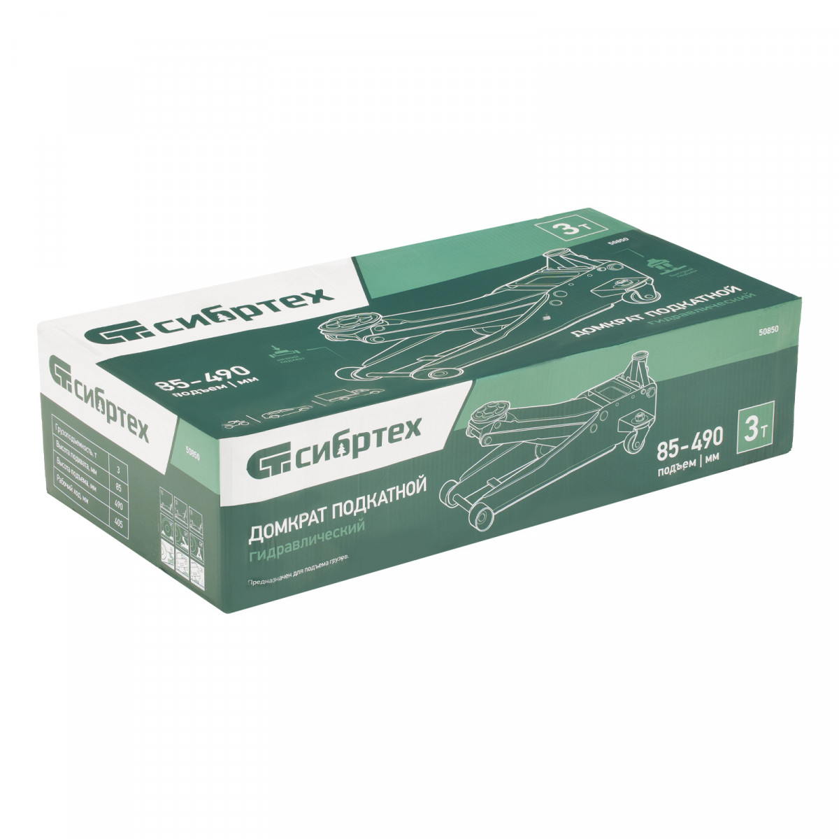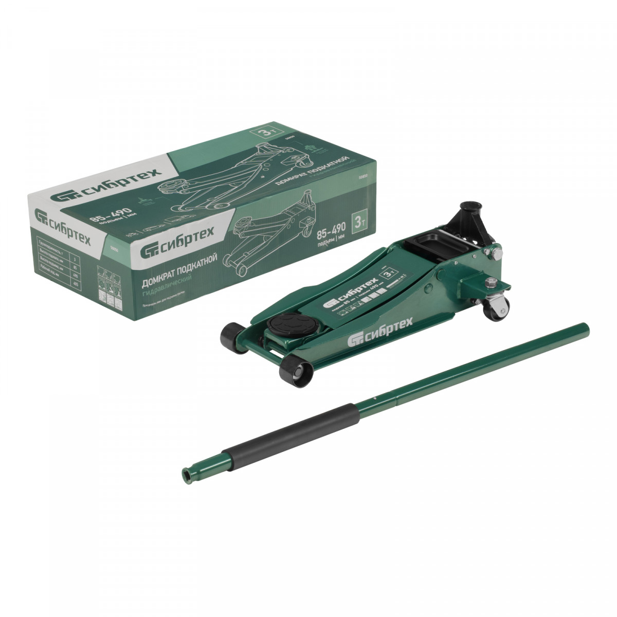 Домкрат гидравлический подкатной, 3 т, 85-490 мм, быстрый подъем, низкий подхват, проф. Сибртех