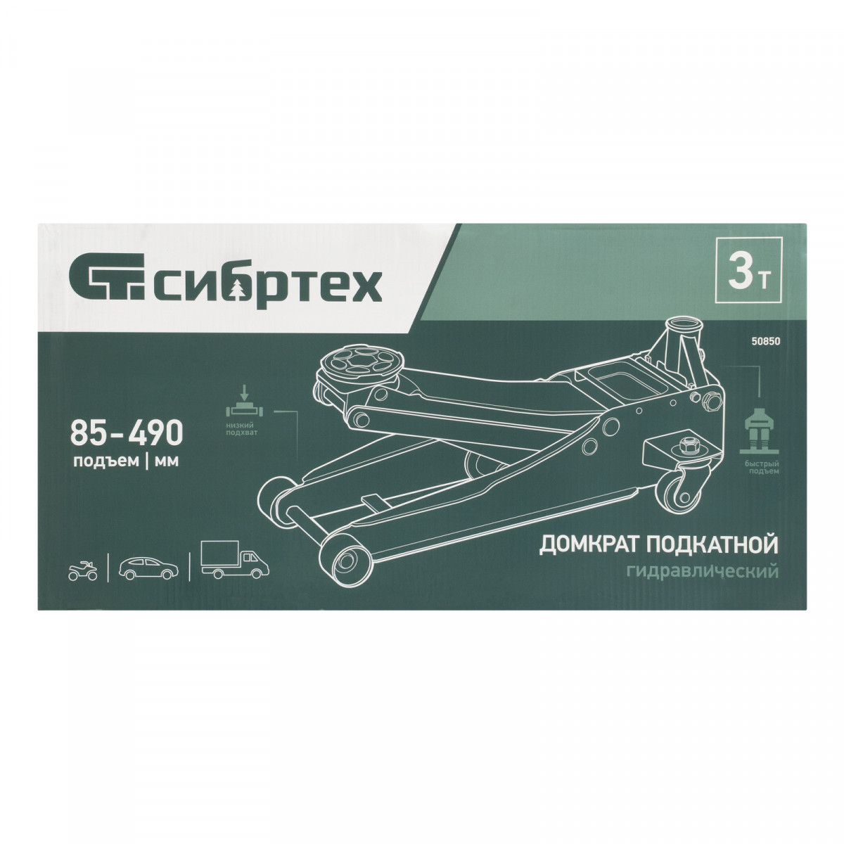 Гидравлический подкатной домкрат Сибртех 50850 с низким подхватом предназначен для быстрого подъема грузов массой 3 тонны на высоту с 85 до 490 мм. В гидравлическом блоке предусмотрено 2 насоса (система быстрого подъема QUICK LIFT), благодаря чему для достижения предельной высоты достаточно 6 качков рукоятки. Подходит для автомобилей с небольшим клиренсом, рекомендован для профессионального использования. Незаменим на предприятии автосервиса.