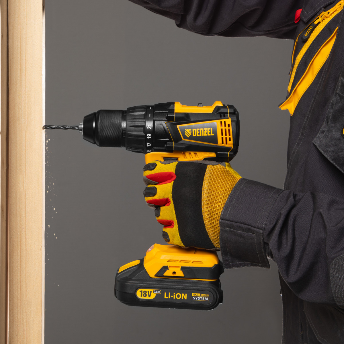 Дрель-шуруповерт аккумуляторная, бесщет. BLDL-IB-18-02, Li-Ion, 18 В, 2 акк. Denzel