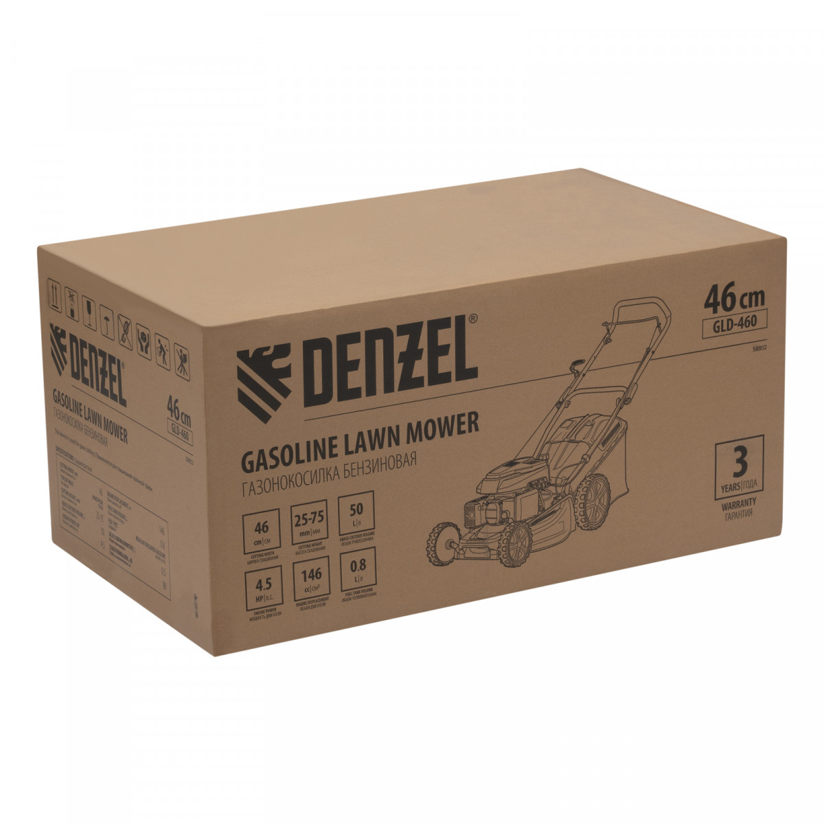 Газонокосилка бензиновая Denzel GLD-460 58802 с двигателем объемом 146 см3, ручным приводом и травосборником на 50 л, с 7 уровнями скашивания и шириной прохода 46 см, предназначена для уходом за молодой травой на приусадебном участке. Благодаря мощности двигателя 4,5 л.с. и ширине скашивания 46 см/проход за 1,5 часа удастся обработать до 2500 м2.