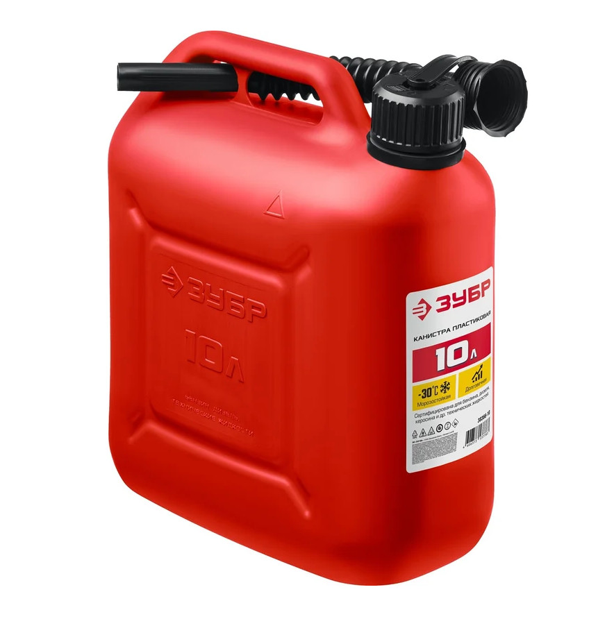 Пластиковая канистра ЗУБР 10 л 38366-10 - легкая герметичная емкость для транспортировки технических жидкостей.Применяется для транспортировки и хранения ГСМ.