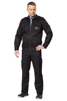 Рекомендуется для охранных структур, работы, активного отдыха. Состоит из куртки и брюк. Куртка прямого силуэта с центральной застежкой на молнию, отложным воротником. Оснащен нагрудными  накладными карманами с клапанами на липучках  для средств связи, имеется карман на молнии для документов. Поверх кармана прозрачное  окно для бейджа. На рукаве накладной карман с клапаном.  Объем талии брюк регулируется эластичной лентой. Артикулированные колени. Низ штанин регулируется эластичным шнуром. Ткань: 65% полиэфир, 35% хлопок пл.210 г/м2, ВО