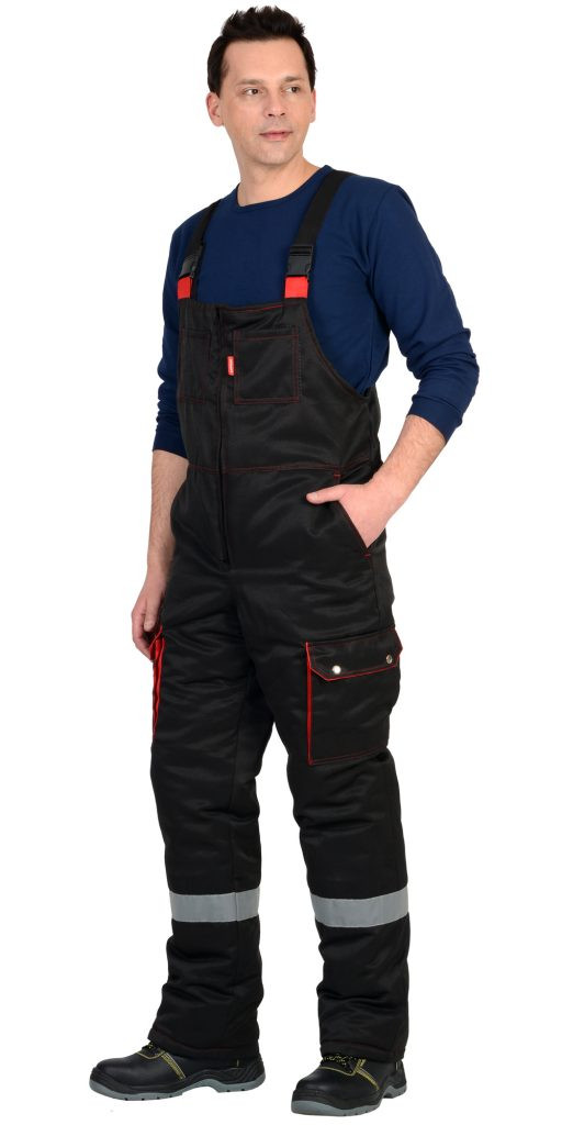 уртка длинная прямого силуэта, с притачной утепленной подкаладкой, с центральной застежкой на двухзамковую молнию, с ветрозащитным клапаном с 4 кнопками, Воротник отложной, Контрастная кокетка полочек и спинки, Имеются верхние накладные карманы на левой полочки и с верхние прорезные карманом на правой полочке, нижними накладными полуобъемными карманами с фигурным клапаном, застегивающимся на кнопку Кулиса по линии талии. Полукомбинезон прямой, с притачной утепленной
