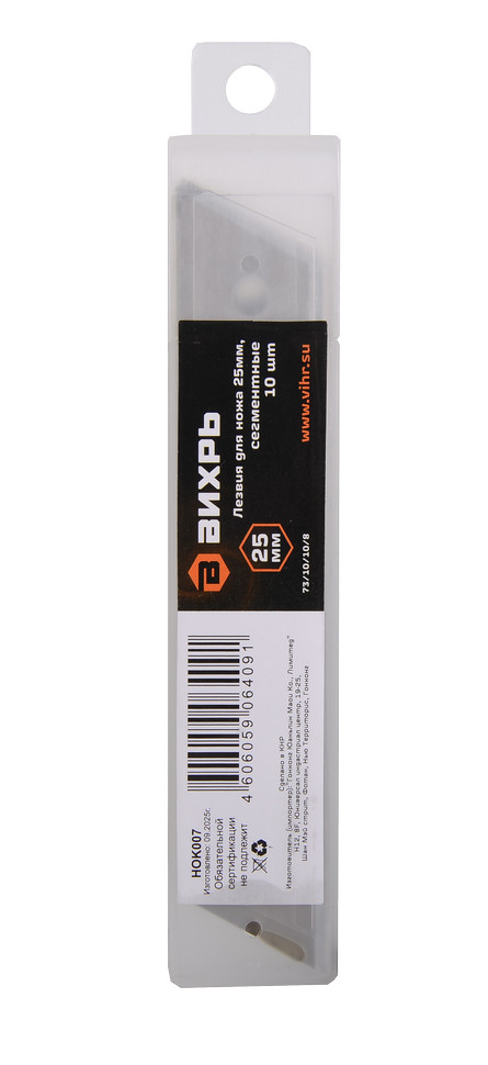 Лезвия для ножа 25мм., 10 шт., Вихрь подходят как к ножам Вихрь, так и к ножам других брендов с шириной лезвия 25 мм.