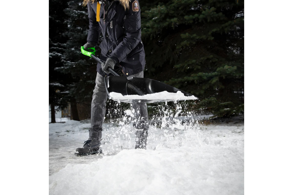Пластиковая лопата для уборки снега с алюминиевым черенком, используется для расчистки территории в зимний период. Благодаря алюминиевой накладке на кромке ковша инструмент эффективно справляется даже с плотным слежавшимся снегом и настом. Лопата весит всего 1,24 кг, поэтому с ней легко работать людям с разным уровнем подготовки. Инструмент пригодится при уборке придомовой территории, пространства перед гаражом или садового участка. Преимущества: - Ковш из прочного полипропилена не разрушается под действием низких температур, поэтому прослужит долго. - Алюминиевый черенок с покрытием из порошковой эмали устойчив к коррозии и механическим повреждениям. - Глубокий ковш с ребрами жесткости позволяет переносить большое количество снега без риска поломки. - Черенок оснащен дополнительной рукояткой, благодаря чему не скользит в руке даже при длительной работе.