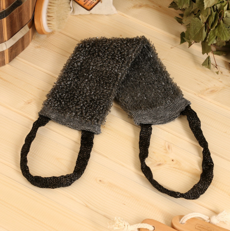 Мочалка банная мужская с ручками Пояс черная 36 см без ручек