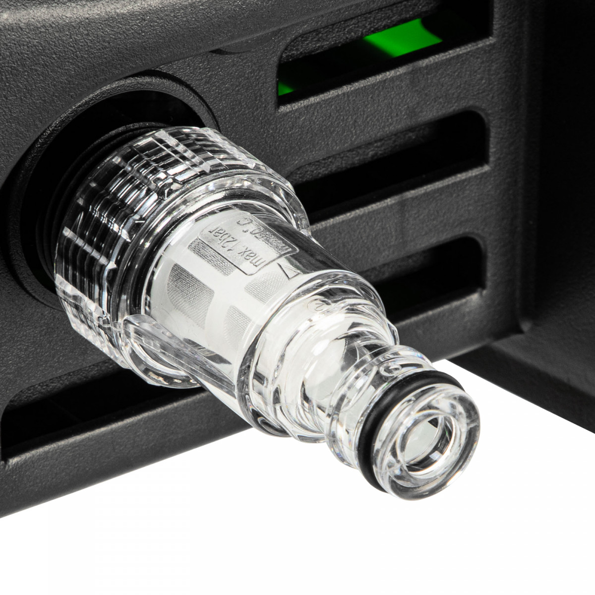 - Быстрая подготовка к работе — шланг соединяется с пистолетом в одно нажатие без применения инструмента и легко подключается к моечной машине через быстросъемный адаптер.