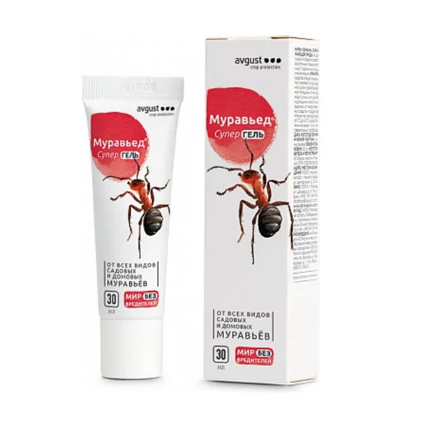 От всех видов садовых и домовых муравьев.Не имеет запаха.Содержит пищевые добавки, привлекающие муравьёв.Удобный носик тубы позволяет наносить гель в труднодоступные места.Обладает продолжительным действием, благодаря длительному высыханию геля.