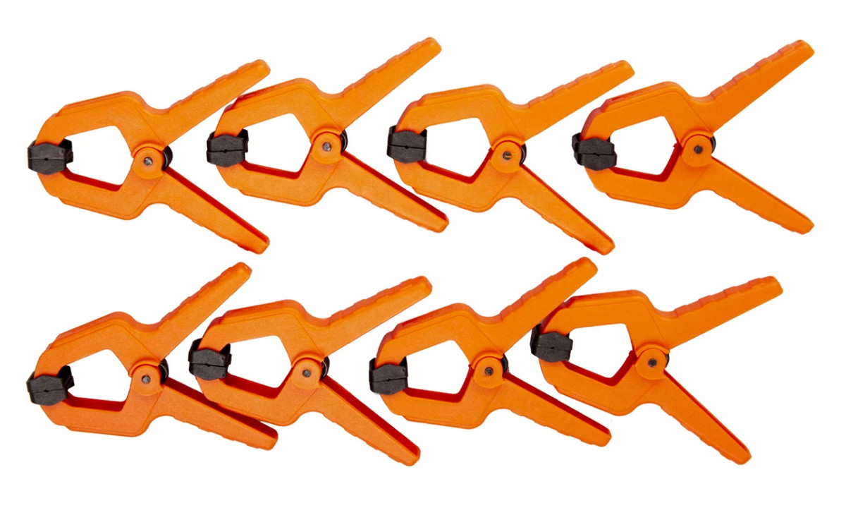 Набор пружинных зажимов применяется при работе с изделиями из пластмассы, стекла и дерева. Плавная регулировка и накладки из мягкого материала обеспечивают аккуратную работу с хрупкими материалами. Рама зажимов выполнена из нейлона, что обеспечит долгий срок службы инструмента.Набор поставляется в пластиковом кейсе, что позволяет рационально хранить и транспортировать инструмент.