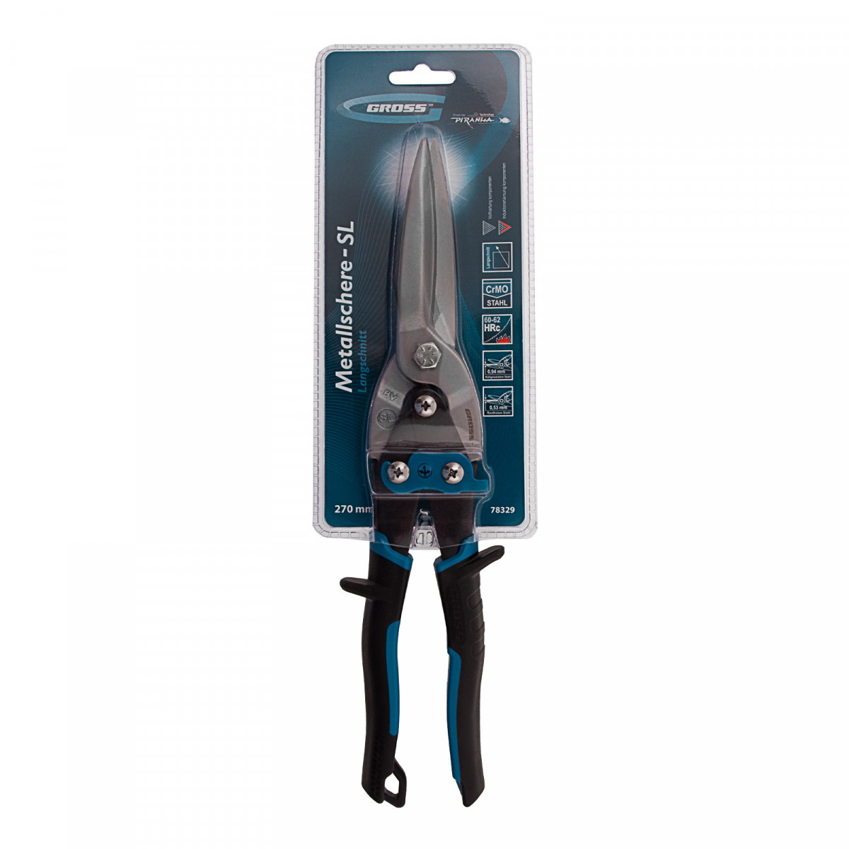 Ножницы по металлу "Piranha", 270 мм, прямой проходной рез, сталь СrMo, двухкомпонентные рукоятки Gross