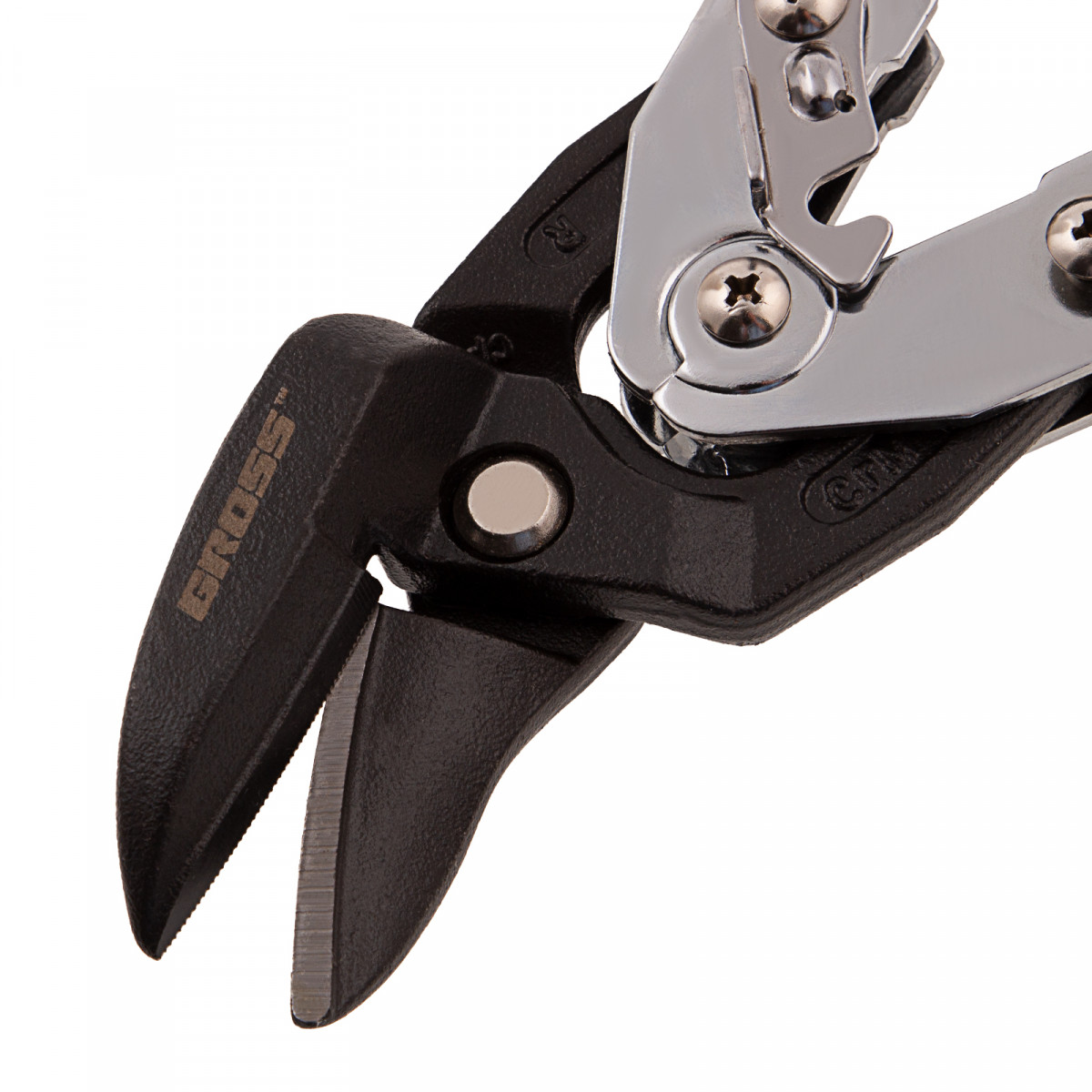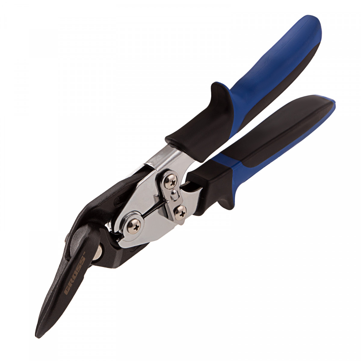 Ножницы по металлу "Piranha", усиленные, 255 мм, прямой и правый рез, сталь СrMo, двухкомпонентные рукоятки Gross