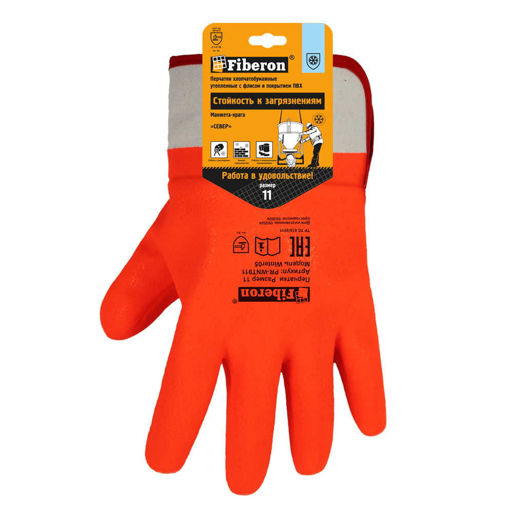 Перчатки утепленные, манжета-крага хлопок+флис, ПВХ покрытие Fiberon