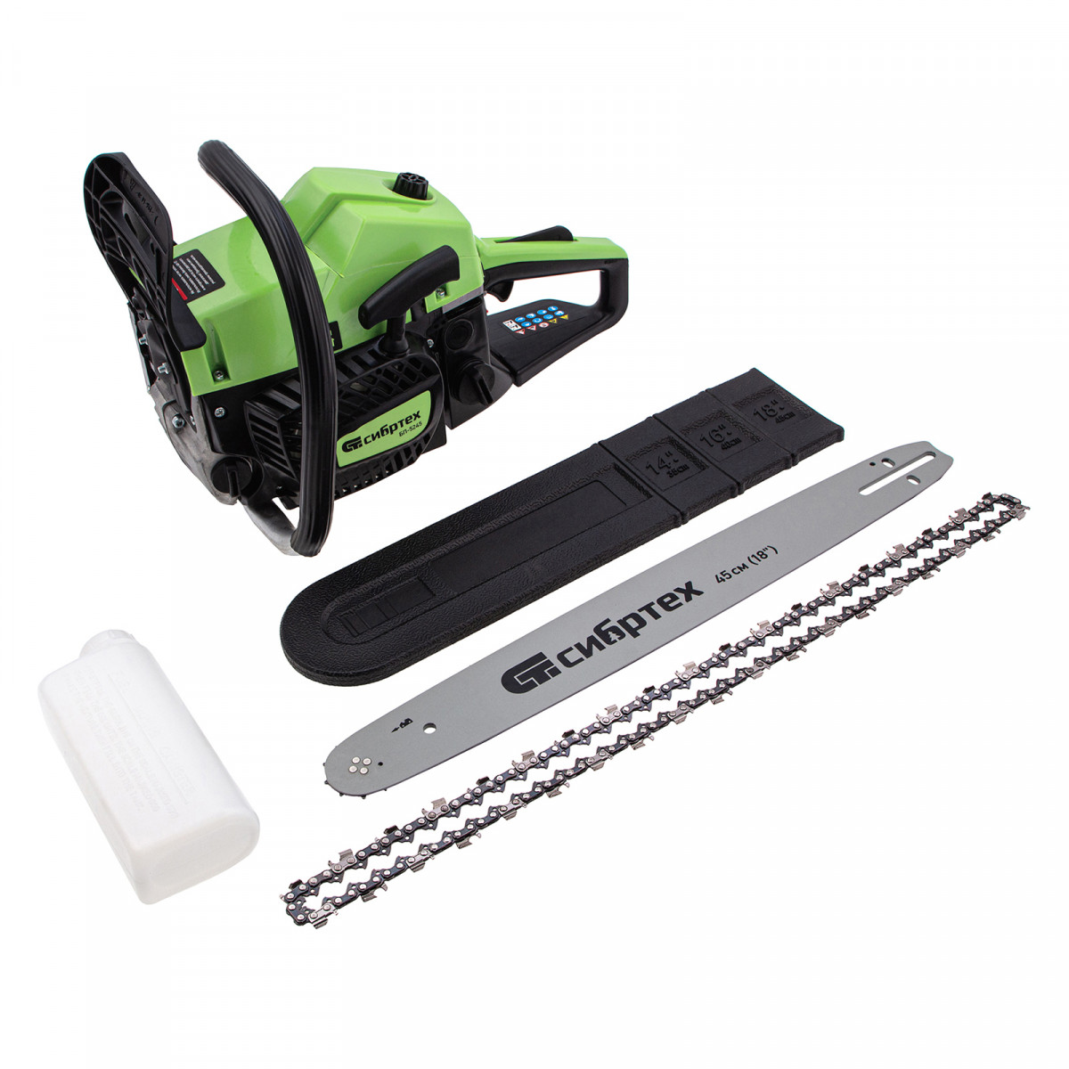 Пила цепная бензиновая БП-5245, 52 см3, шина 45 см, шаг 0.325, паз 1,5 мм, 72 звена Сибртех