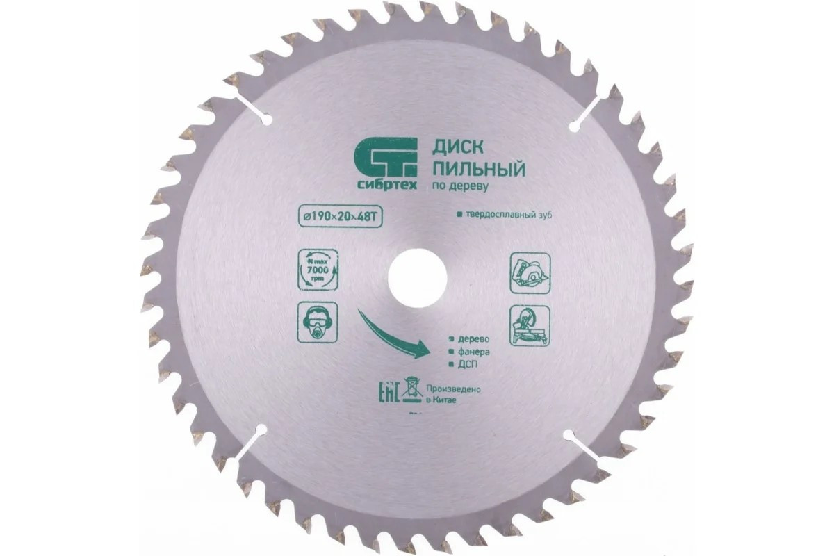 Пильный диск по дереву Сибртех 732147, ф190 х 20 мм, с 48 зубьями и переходным кольцом 20/16 предназначен для распила древесины мягких и твердых пород, фанеры, ДСП, МДФ. Используется с циркулярными и торцовочными пилами с посадочным диаметром 20 мм. Переходное кольцо 20/16 позволяет при необходимости изменить размер посадки. Мелкие зубья обеспечивают точный рез с чистыми кромками. Диск подходит для бытового применения.
