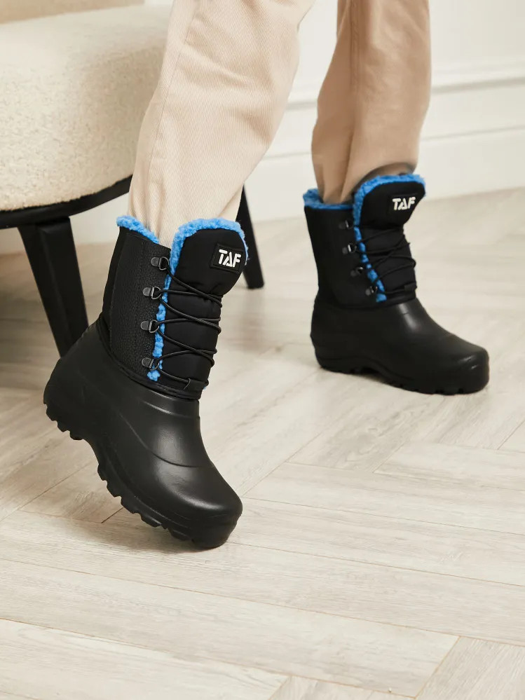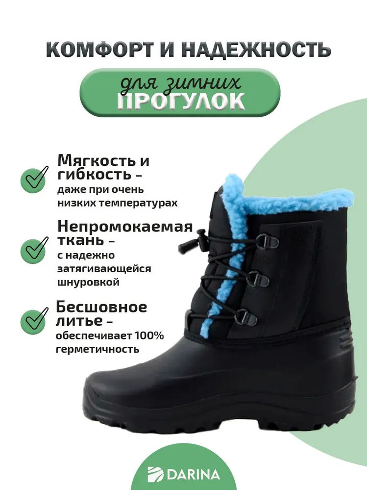 Полусапоги зимние женские из ЭВА с комбинированным верхом голубой+черный Дарина