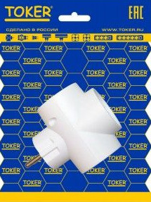 Разветвитель TOKER 3T1a 3 розетки 16А белый1 роз земля T-образный/ИУ