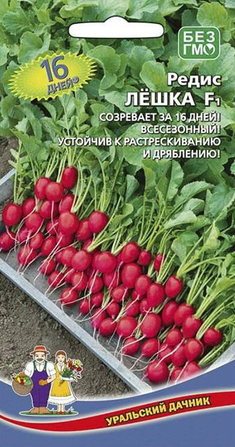 Один из самых ультраскороспелых гибридов (созревание на 16 день после появления всходов). Благодаря устойчивости к повышенной освещенности «Лёшку» можно выращивать на протяжении всего сезона. Корнеплоды устойчивы к растрескиванию и дряблению, ярко-красные, с сочной, хрустящей белоснежной мякотью и отличным вкусом.