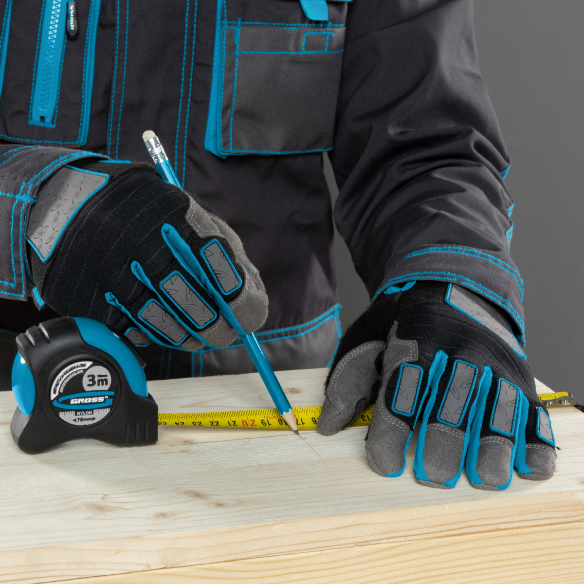 Рулетка Gross «Schlagfest» 31111 с магнитным обрезиненным зацепом, двухсторонней шкалой и функцией автоматической фиксации полотна длиной 3 м и шириной 19 мм, с нейлоновым покрытием, позволяет определять размеры предметов, вычислять площадь помещения и проводить другие измерительные работы. Магнитный обрезиненный зацеп надежно фиксируется на скользких и металлических поверхностях со сложной формой. Карманная рулетка пригодится на строительной площадке и в быту.
