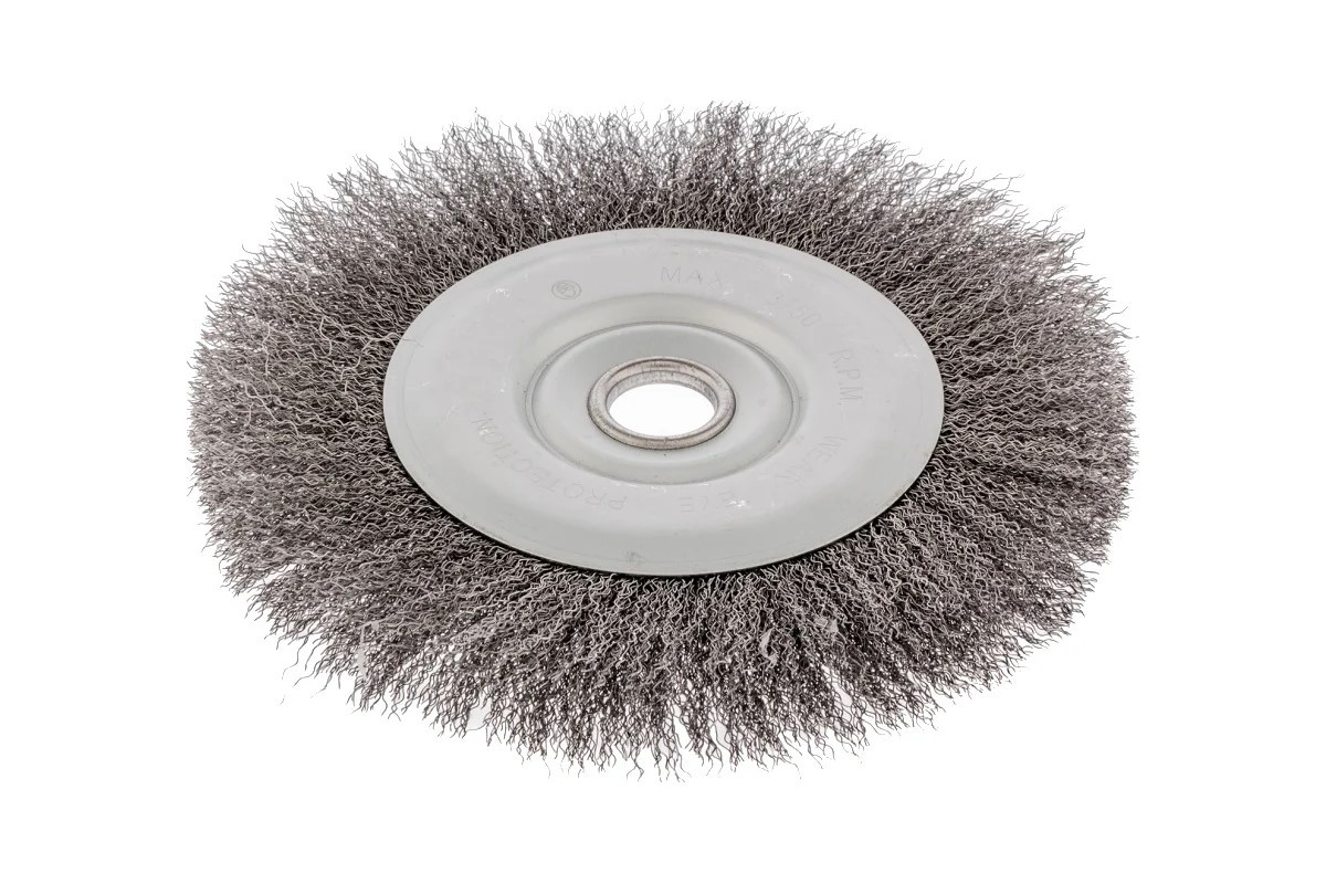 Плоская щетка для УШМ с щетиной из витой проволоки, предназначена для щадящей очистки твердых поверхностей от загрязнений, ржавчины, остатков краски и других покрытий. Щетина из проволоки толщиной 0,3 мм постепенно снимает тонкий слой материала. Плоская форма щетки делает ее оптимальным инструментом для обработки внутренних углов, пазов, изгибов и малодоступных мест. Щетка позволяет придать шероховатость или подчеркнуть структуру материала. Насадка устанавливается на фланец углошлифовальной машины и подходит для продолжительной работы, не требующей частой смены оснасток. Рекомендуемая максимальная скорость вращения составляет 3750 об/мин. Для обеспечения безопасности оператора следует использовать средства индивидуальной защиты. Щетка применяется в строительной, производственной сфере, а также в быту.