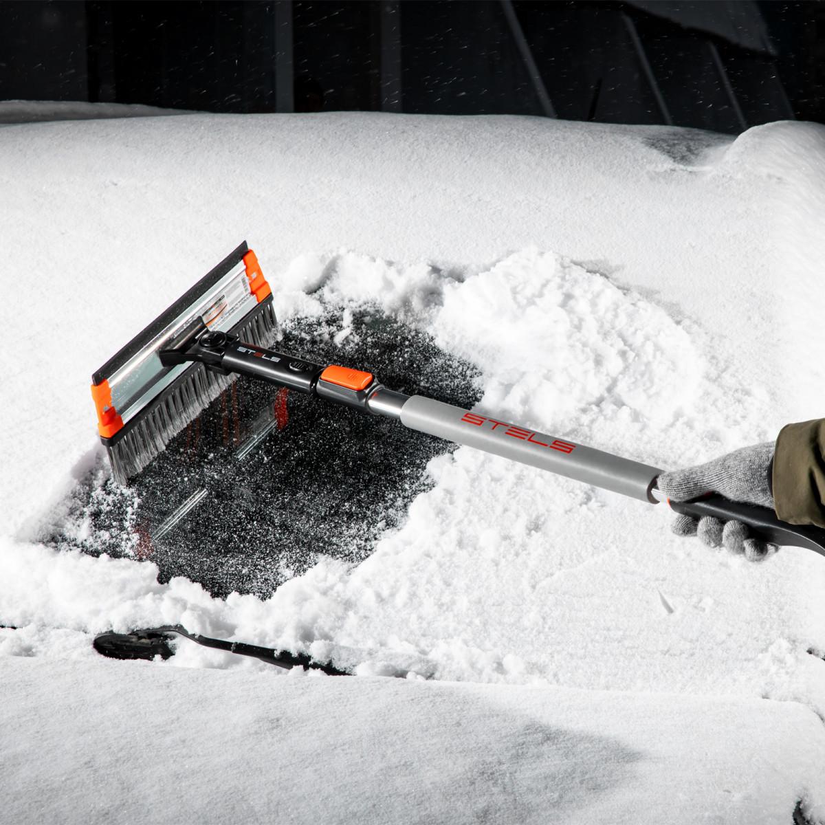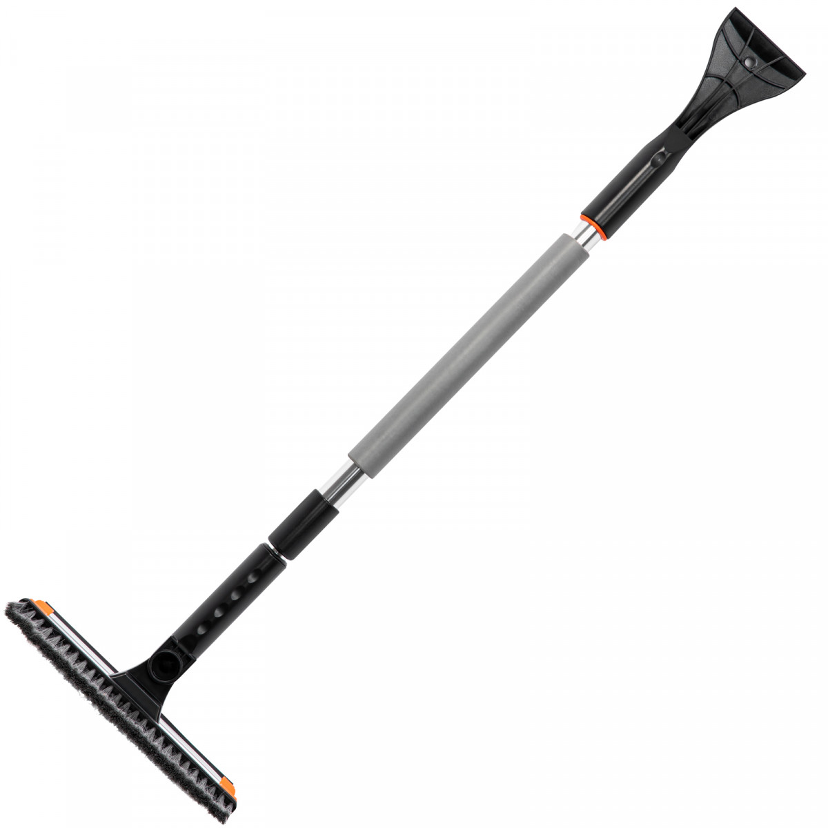 Телескопическая щетка-сметка для снега Stels 55299 со скребком и водосгоном, с поворотной головой, используется для очищения автомобиля от снега, наледи и воды. Благодаря рабочей части длиной 240 мм с плотной распушенной щетиной щетка эффективно и аккуратно удаляет слой снега с кузова, не царапая его. Скребок шириной 250 мм быстро удаляет наледь, а зубья дробят толстую корку льда. Щетка со скребком пригодится владельцам автомашин.