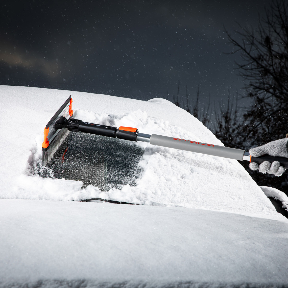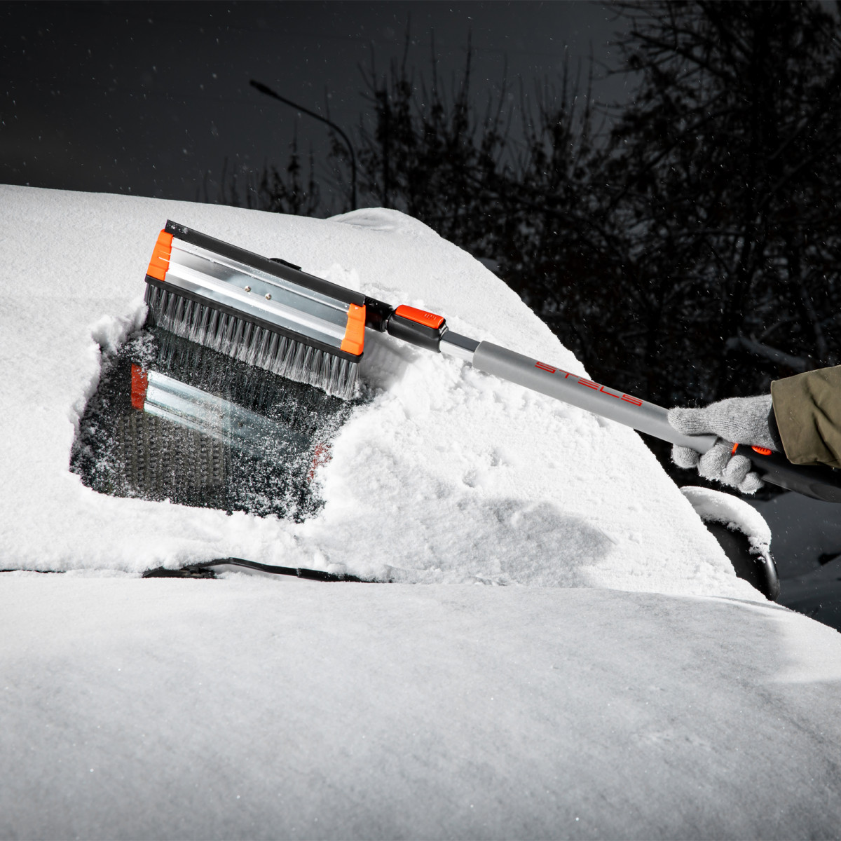 - Раздвижная рукоятка позволяет легко очистить капот или крышу машины.
