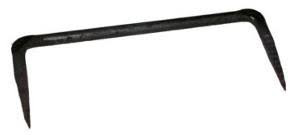 Кованая строительная скоба применяется при сооружении дома из бревен или брусьев. С их помощью крепят лаги для настила полов и потолка, скрепляют стропила с верхним венцом сруба и между собой, усиливают крепление по углам нижних и верхних венцов сруба и т.д.Скоба состоит из ножек и спинки. Концы ножек куются острыми в виде четыреугольных конусов.