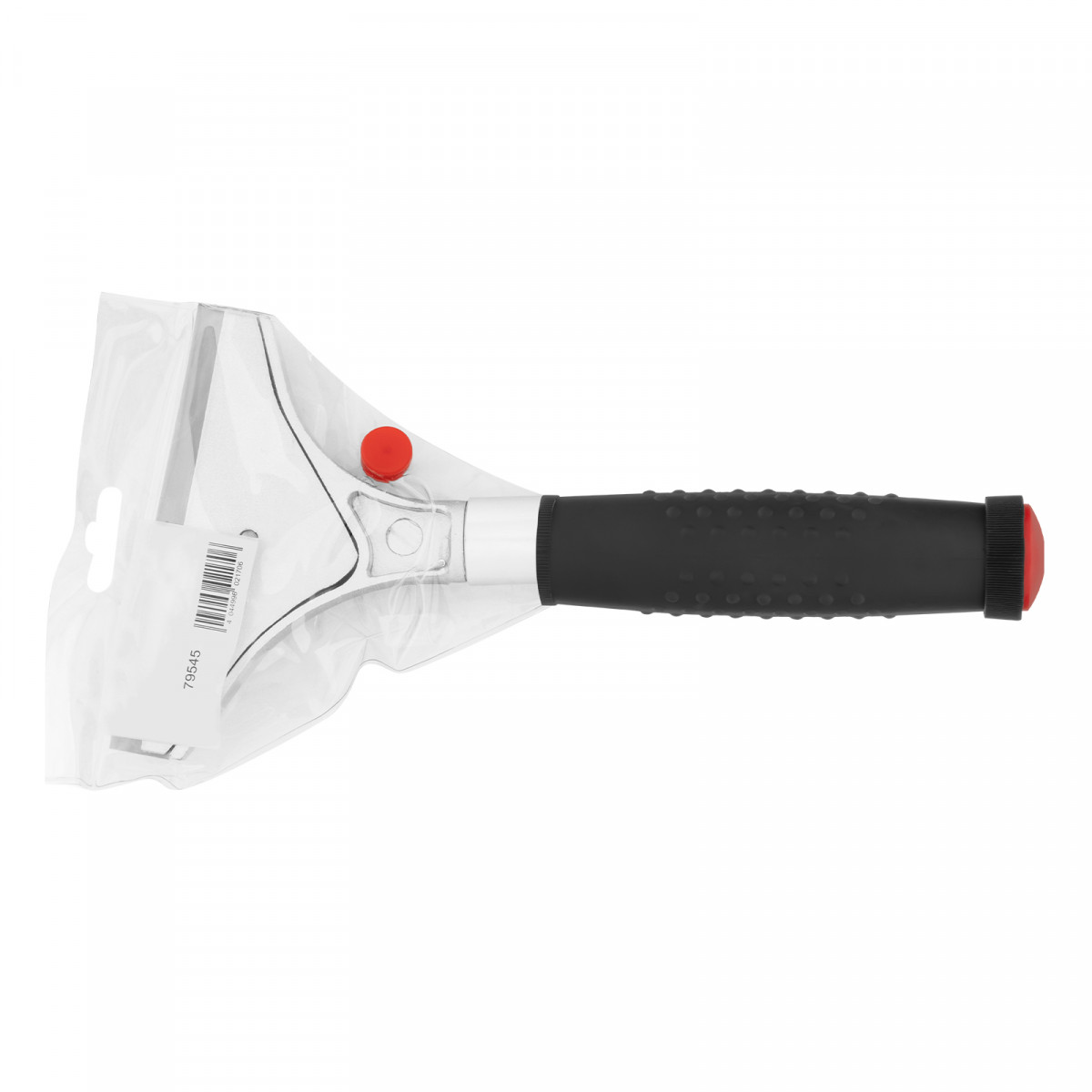Скребок Matrix 79545 с фиксированным лезвием шириной 100 мм, с металлической обрезиненной ручкой, эффективно снимает с поверхностей краску и обои, излишки монтажной пены, наклейки и жевательную резинку. С этими задачами он успешно справляется благодаря острой стороне двустороннего лезвия. Тупая сторона лезвия используется для удаления шпаклевки, цемента, остатков строительных смесей. Предусмотрена возможность замены полотна, поэтому скребок прослужит долго. Инструмент будет полезен во время отделочных работ, пригодится также в быту.
