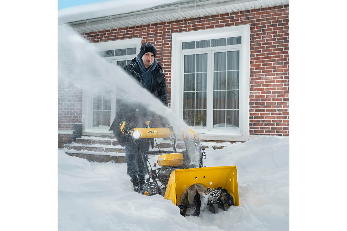 Бензиновая снегоуборочная машина Denzel SB 560 LP 97652 предназначена для расчистки дачных участков, придомовой территории, парковок, дорожек и других заснеженных территорий. Ресурсный двигатель объемом 212 куб.см с высоким крутящим моментом и кожух шнека шириной 560 мм обеспечивают эффективную уборку снега. Снегоуборщик относится к самоходному типу с двухступенчатой системой забора снега. Электростартер обеспечивает запуск двигателя при низких температурах. Яркая LED фара облегчает работу в темное время суток. Благодаря шинам с глубоким протектором исключается пробуксовка на обледенелой дороге.