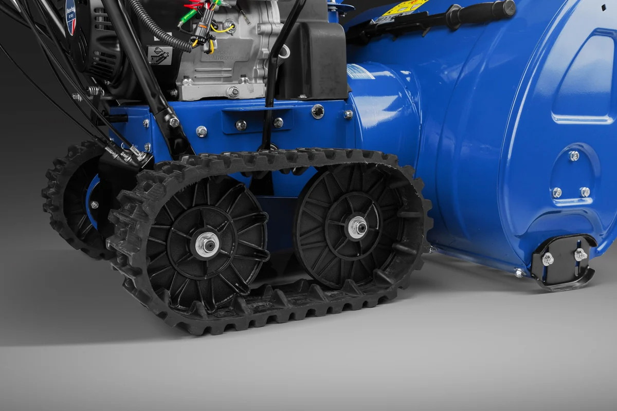 Снегоуборщик MasterYard MV 23528 RET - это бензиновая самоходная гусеничная модель. Машина оснащена электростартером, двойной яркой фарой, системой быстрого разворота желоба выброса и обогревом рукояток