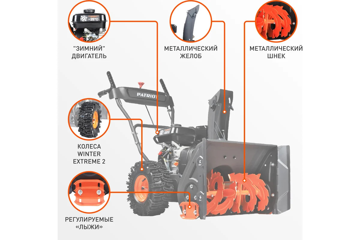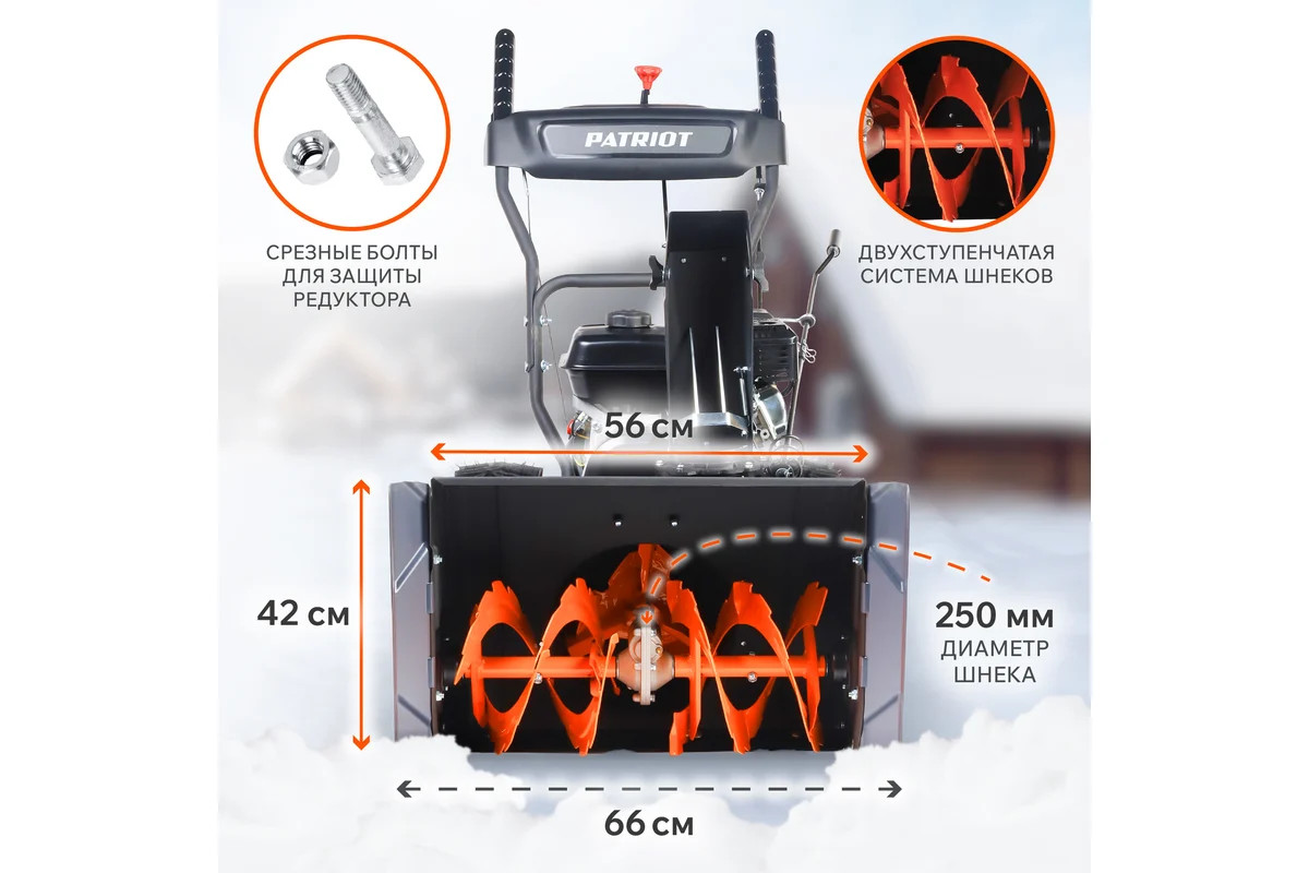 PATRIOT PS 603 – снегоуборщик с бензиновым двигателем, обладающим мощностью 6,5 лошадиных сил. Модель отличается высокой маневренностью и проходимостью, простотой управления и долгим сроком эксплуатации, что достигается за счет использования в конструкции подшипников, а не втулок. Ресурс модели увеличен также за счет использования бронзовой шестерни редуктора шнека. PATRIOT PS 603 имеет механическую трансмиссию. Для движения вперед предусмотрены 5 скоростей, для движения назад – 2 скорости. Благодаря широким колесам, которые не скользят на обледенелом дорожном покрытии, обеспечивается устойчивость машины. При необходимости их можно накачать.