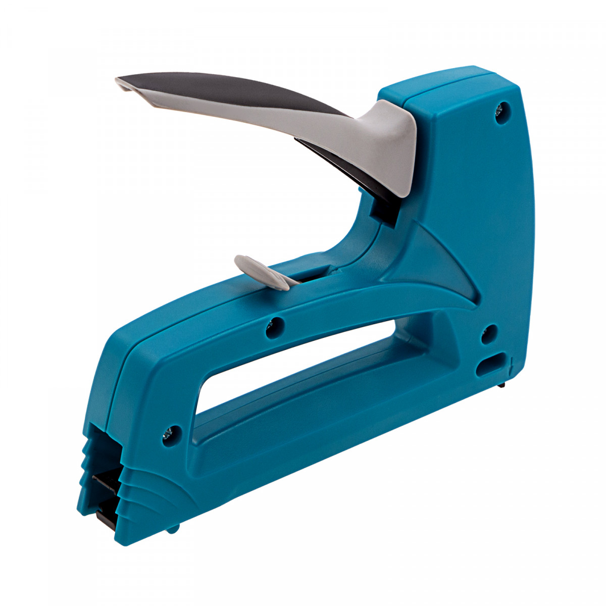 - Эргономичность — двухкомпонентная обрезиненная рукоятка не скользит в руке, что повышает комфортность использования степлера.