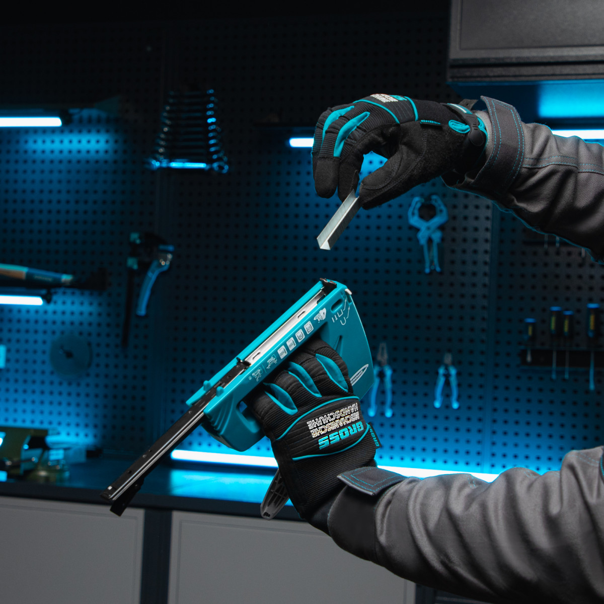 - Контроль наличия скоб — смотровое окошко позволяет отслеживать количество крепежей и своевременно загружать их в скобоприемник.