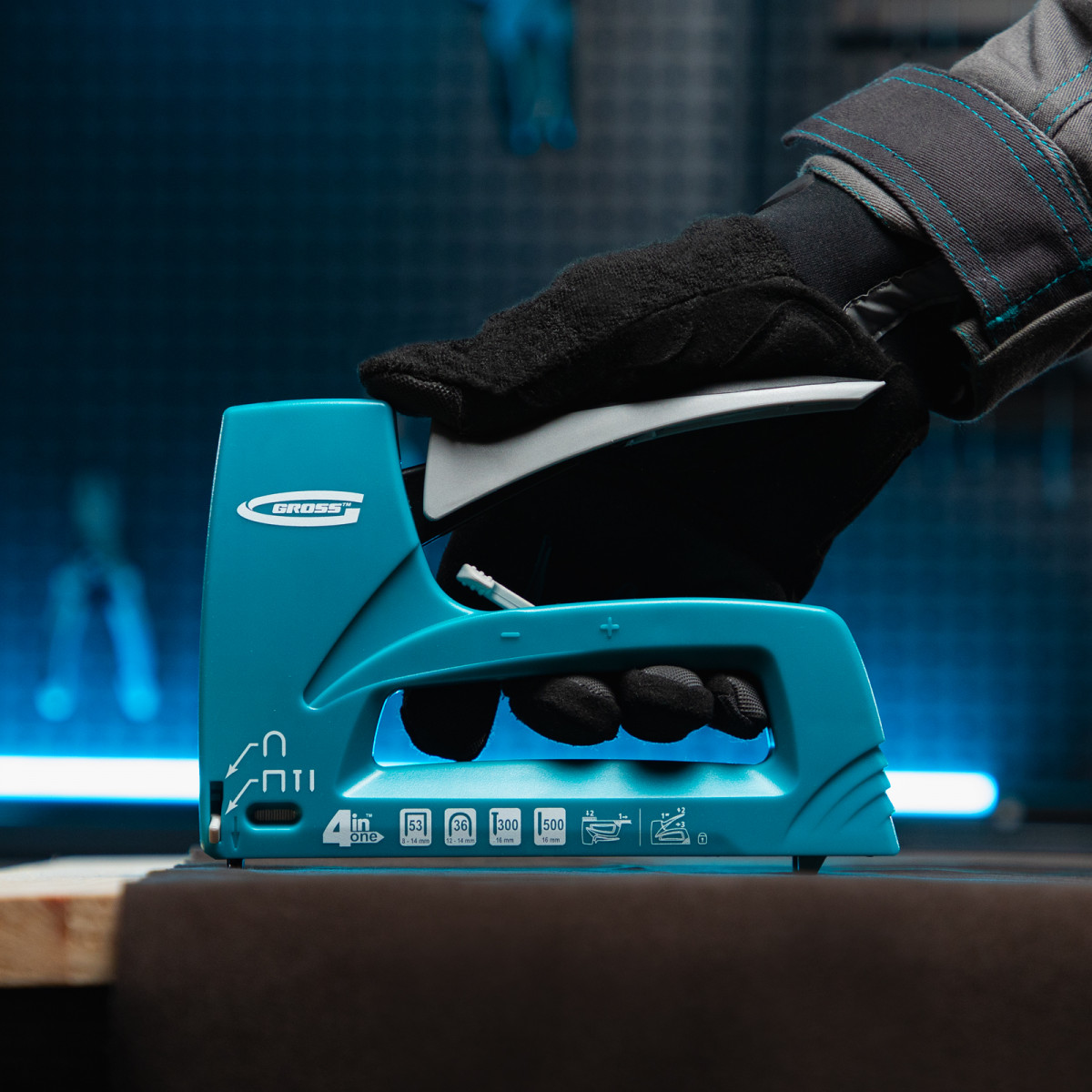 Степлер мебельный универсальные (Universell 4) пластик, 4 функции, тип скобы: 53, 36, 300, 500, 8-14мм Gross