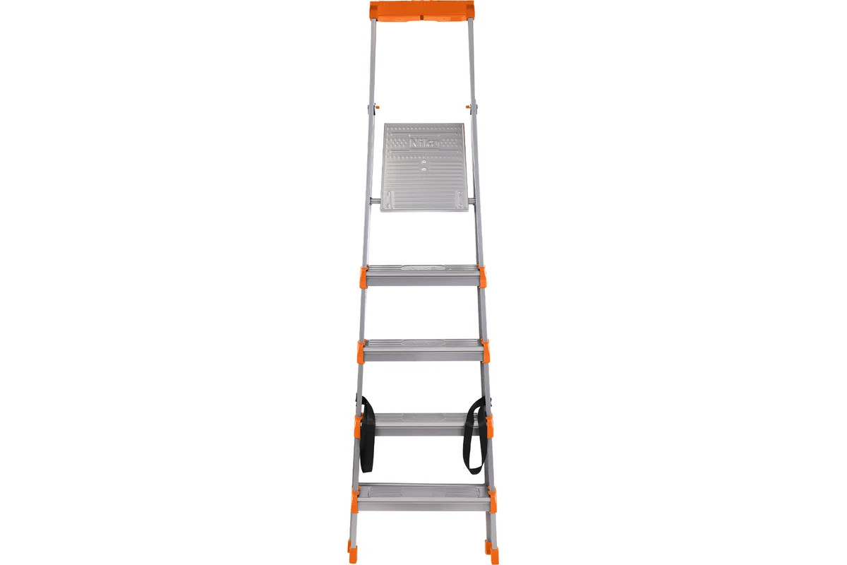Стальная стремянка Nika СМ5 с массивной площадкой и рифлеными ступеньками позволяет проводить работы на большой высоте. Имеет страховочные стяжки для исключения раскладывания. В конструкции стремянки предусмотрен вместительный лоток для инструментов.