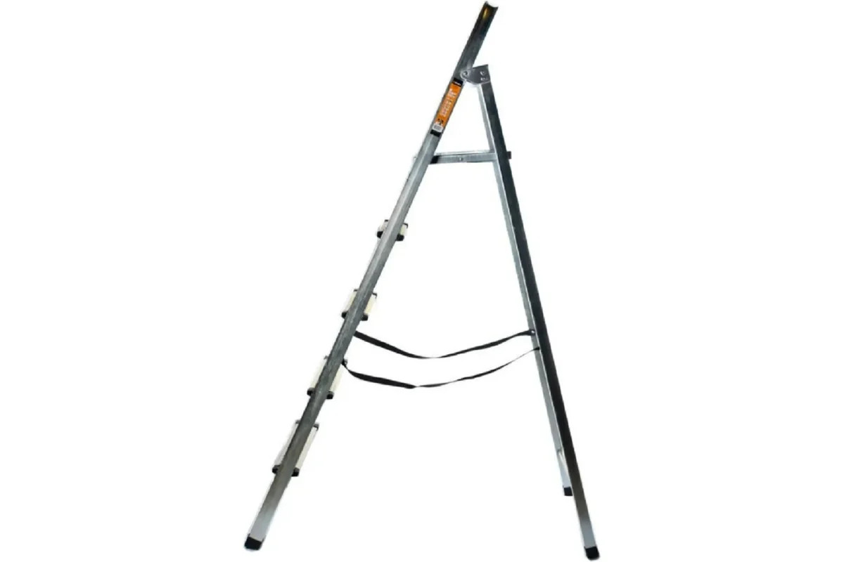 Широкие рифленые ступеньки обеспечивают безопасное и удобное расположение ног при работе на стремянке.