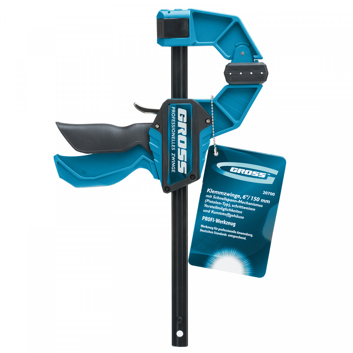 Струбцина реечная, быстрозажимная, пистолетного типа, пошаговый механизм, пластиковый корпус, 150 мм Gross