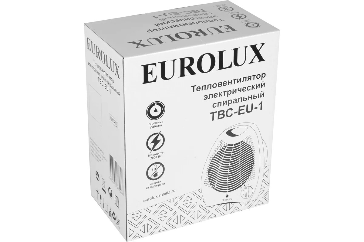 Eurolux TBC-EU-1 – модель электрического тепловентилятора мощностью 2000 Вт, с термозащитой, световой индикацией работы, терморегулятором, предназначенная для обогрева и вентилирования воздуха в помещениях площадью до 25 кв. м.