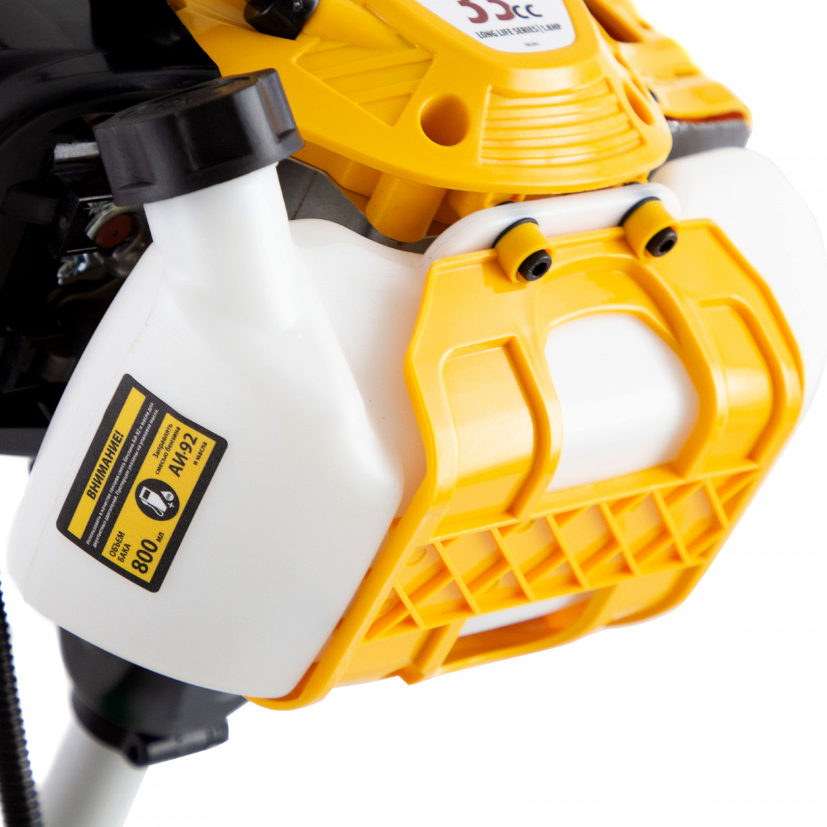 - Удобное приготовление топливной смеси — дозатор для смешивания бензина и масла прилагается к триммеру.