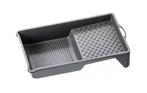 Высококачественная пластмасса, прочная конструкция, специальная форма углов для удобства слива краски.Особенный дизайн зоны прокатки позволяет быстро снять излишки краски с валика.